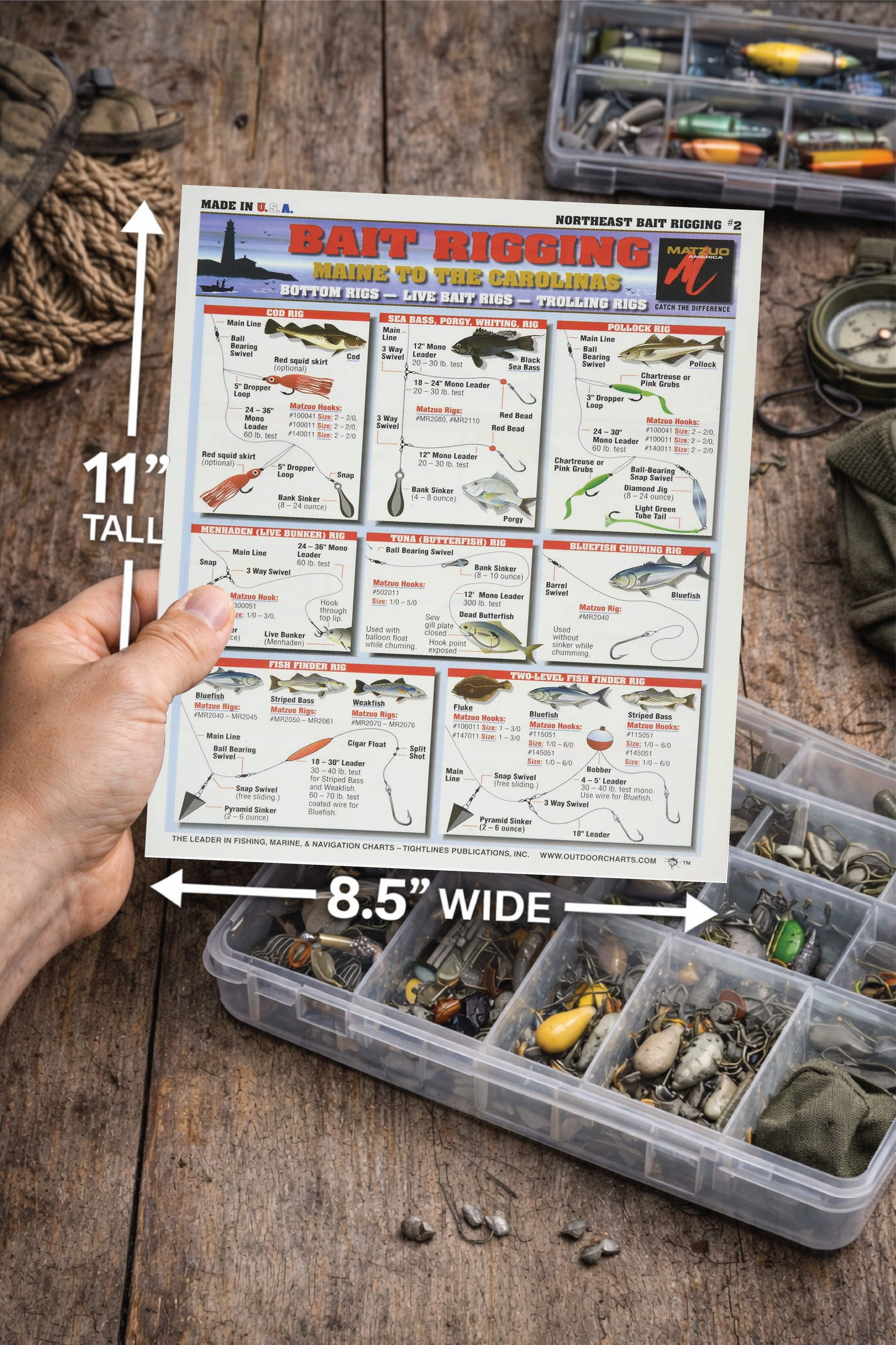 Fishermen's Northeast Bait Rigging #2 (Maine to The Carolinas) - Waterproof Quick Reference Guide | (Bottom Rigs, Bait Rigs, Trolling Rigs)