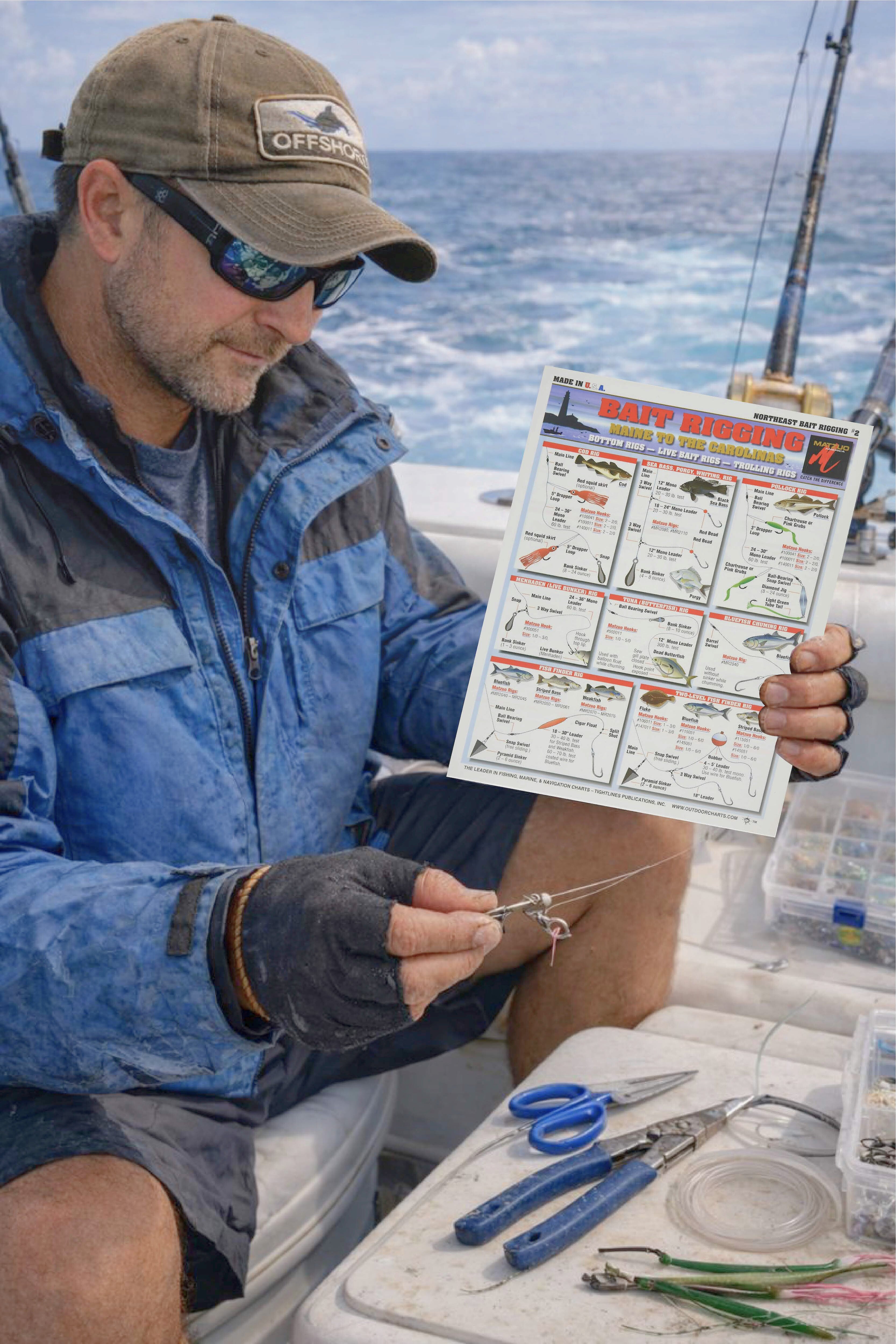 Our Northeast Bait Rigging Chart covers from Maine to the Carolinas and includes Bottom Rigs, Live Bait Rigs, and Trolling Rigs for Flounder, Fluke, Sea Bass, Codfish, and many more.